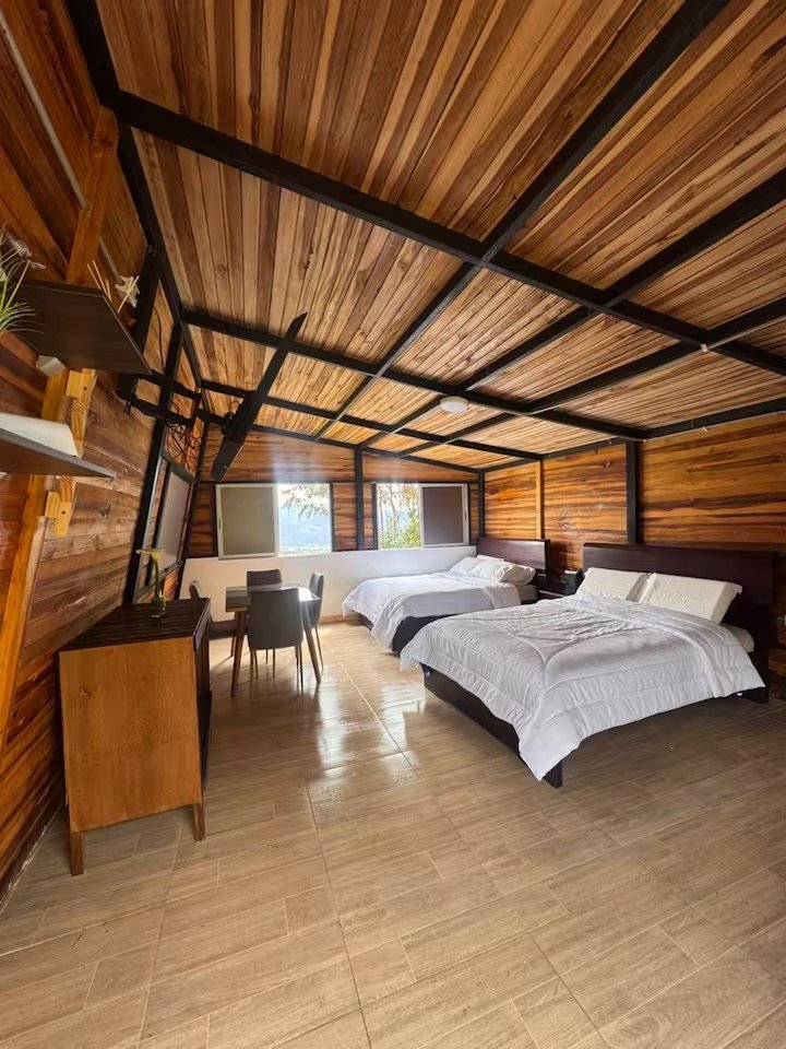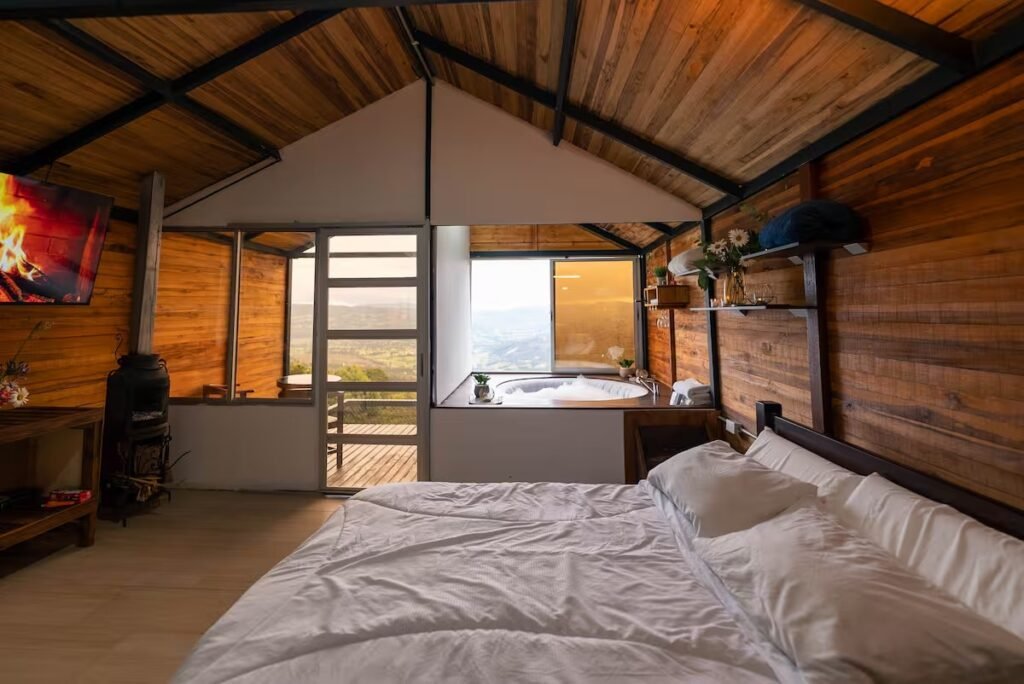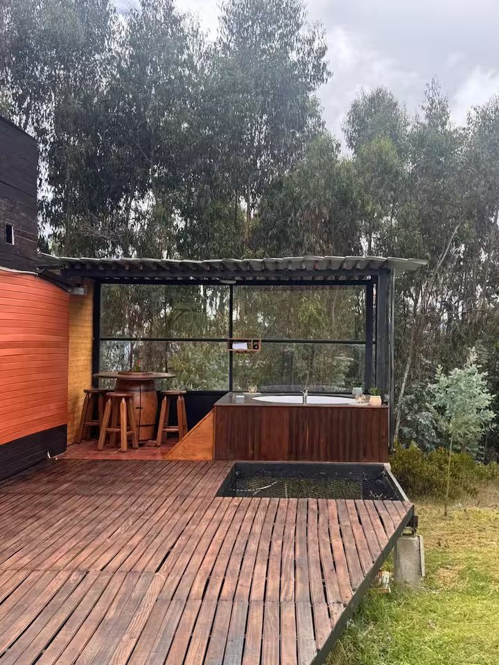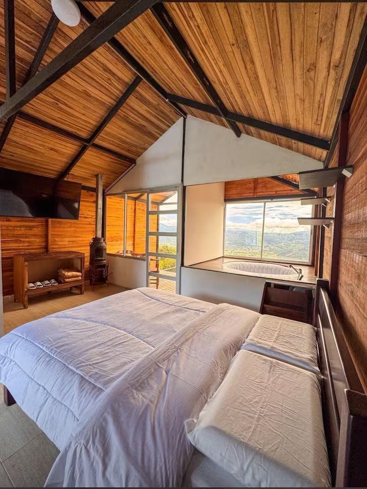 Descubre un refugio en la montaña donde la tranquilidad y la naturaleza son protagonistas. Nuestras cabañas combinan diseño minimalista, comodidad y vistas únicas al paisaje boyacense. Disfruta de un jacuzzi privado, noches estrelladas junto a la fogata y el descanso que mereces en un entorno natural y silencioso. Ideal para familias, parejas o amigos que buscan desconexión, bienestar y una experiencia auténtica en la montaña, rodeado de granjas y huertas boyacences.