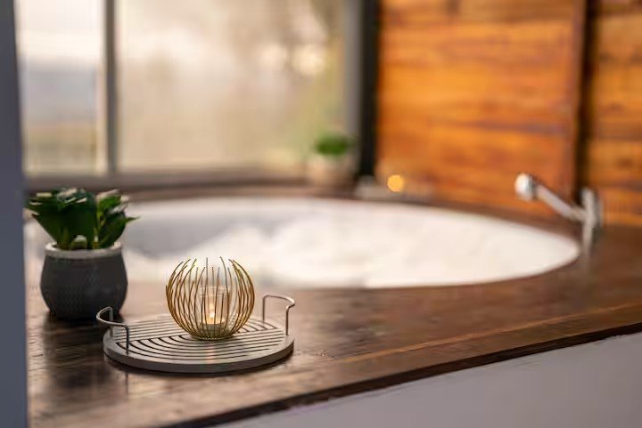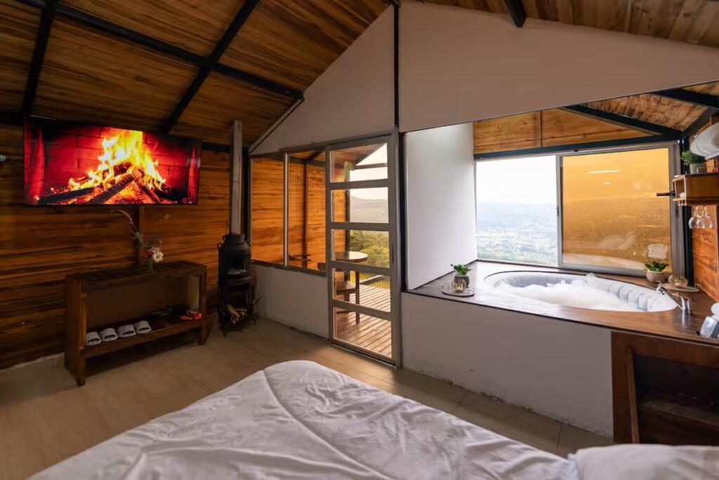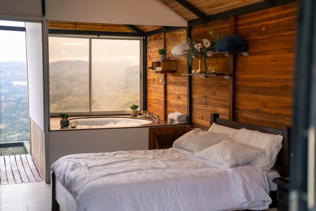 En Costa Azul Refugio Frailejones, disfrutarás de un jacuzzi privado con vista a la montaña, chimenea de leña, cocina moderna y una atmósfera cálida rodeada de naturaleza.