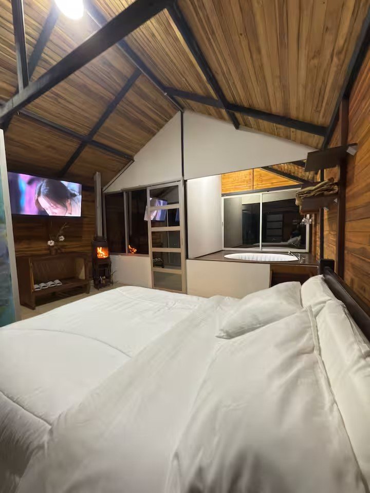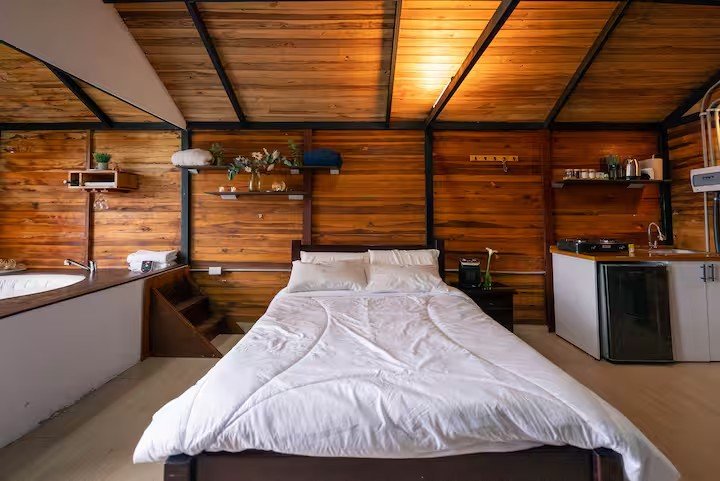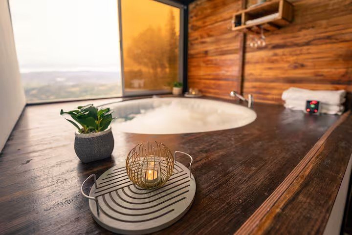 Honest opinion ☺️ Cuando reserve lo hice con la intención de pasar un fin de semana lejos del caos junto con mi perrita que me encanta llevarla conmigo a todas partes y la verdad nos fascinó. La vista y la tranquilidad son de otro mundo. Las cabañas súper cómodas y el jacuzzi con esa vista tan increíble ni que decir. Se que volveremos. Highly recommend it.